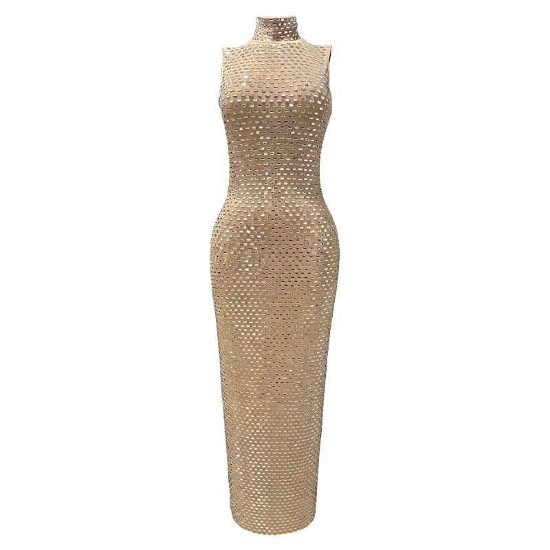 Onyx Gold Beaded Maxi Dress