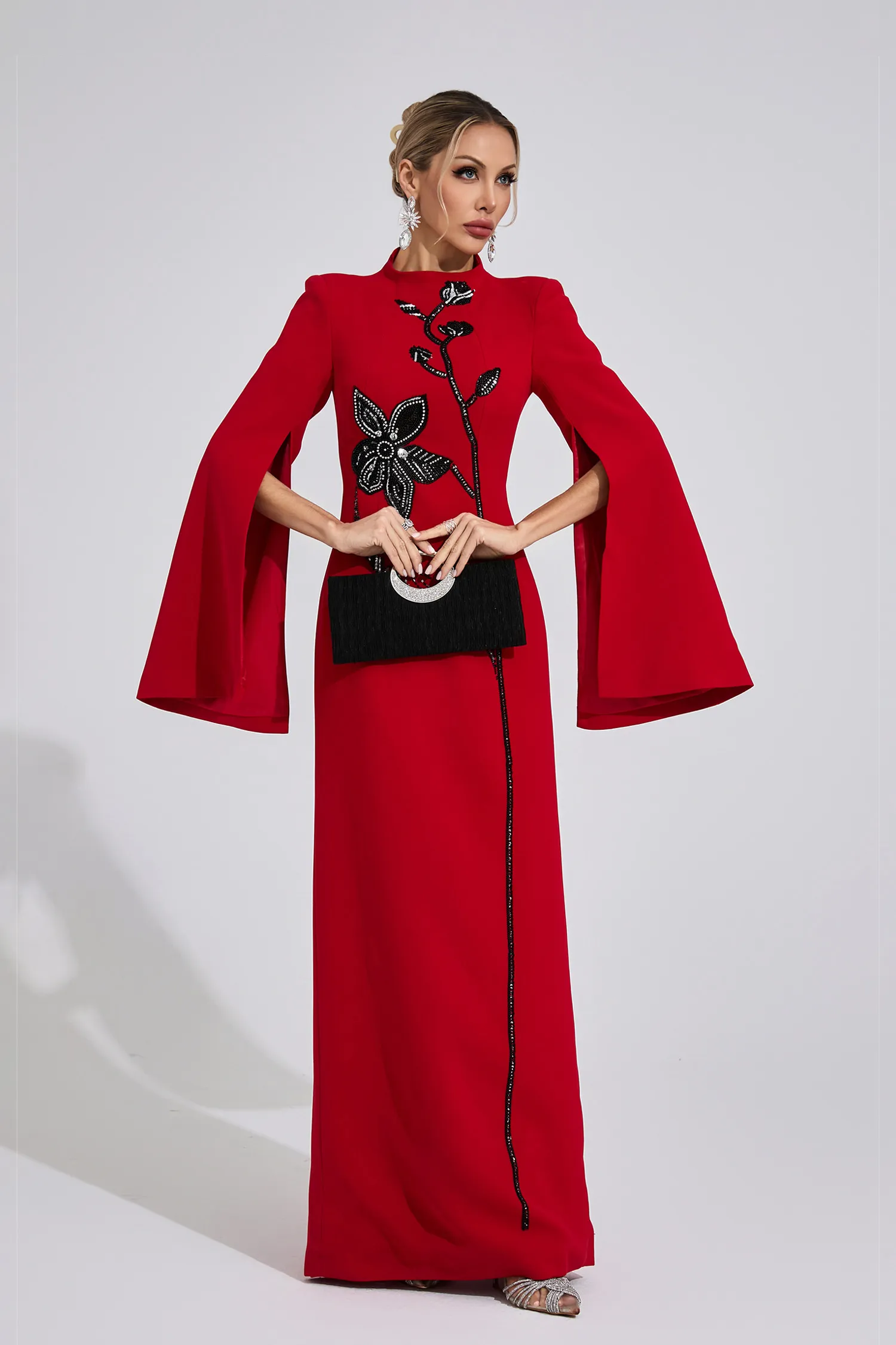 Red is the ultimate Valentine’s color—and Gaenor proves why. With its diamond-inspired texture and flowing silhouette, this maxi dress radiates confidence and allure.