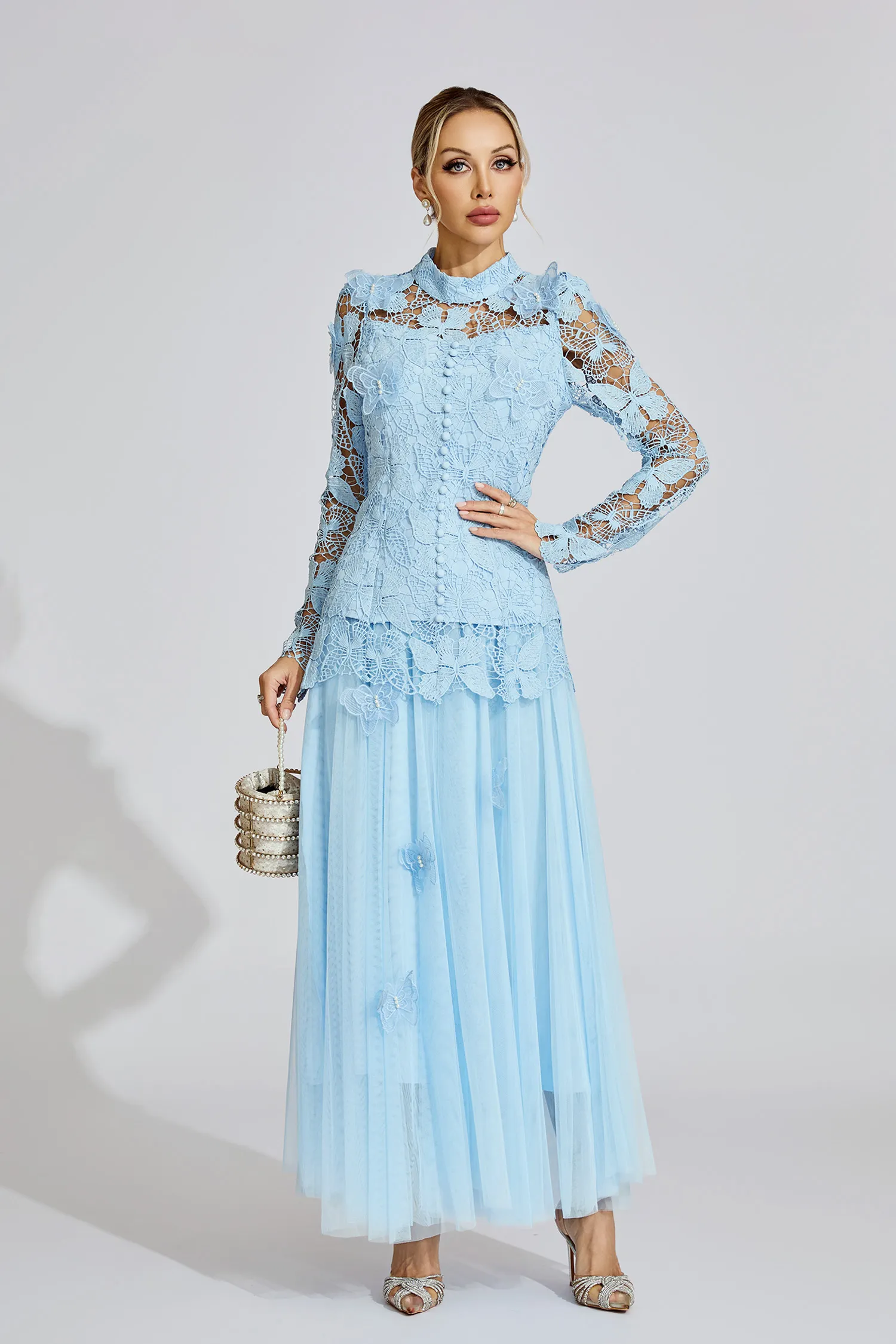 Shop The Look: Leanna Blue Flower Embroidered Maxi Dress